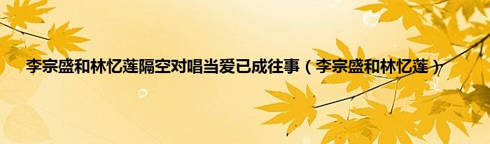 以上就是【李宗盛和林忆莲隔空对唱当爱已成往事,李宗盛和林忆莲】相关内容。