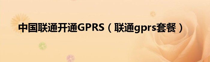 中国联通开通GPRS(联通gprs套餐)