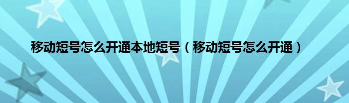 以上就是【移动短号怎么开通本地短号,移动短号怎么开通】相关内容。