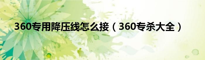 大家好,小问来为大家解答以上问题。360专用降压线怎么接,360专杀大全这个很多人还不知道,现在让我们一起来看看吧!