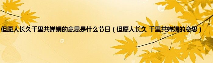 大家好,小问来为大家解答以上问题。但愿人长久千里共婵娟的意思是什么节日,但愿人长久 千里共婵娟的意思这个很多人还不知道,现在让我们一起来看看吧!