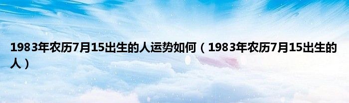 以上就是【1983年农历7月15出生的人运势如何,1983年农历7月15出生的人】相关内容。