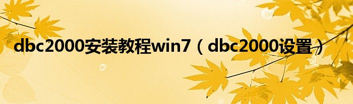 以上就是【dbc2000安装教程win7,dbc2000设置】相关内容。