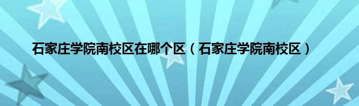 大家好,小问来为大家解答以上问题。石家庄学院南校区在哪个区,石家庄学院南校区这个很多人还不知道,现在让我们一起来看看吧!