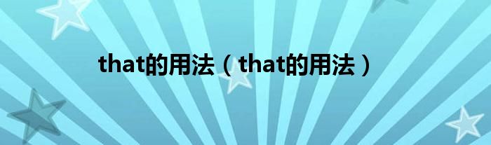 that的用法(that的用法)
