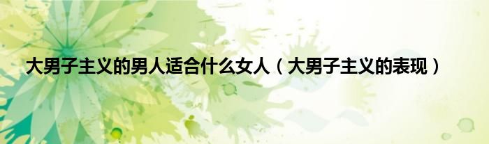 大家好,小问来为大家解答以上问题。大男子主义的男人适合什么女人,大男子主义的表现这个很多人还不知道,现在让我们一起来看看吧!