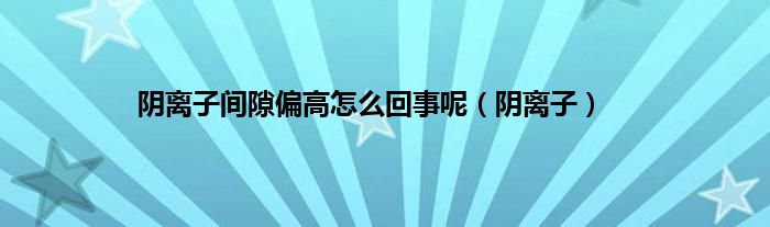 大家好,小问来为大家解答以上问题。阴离子间隙偏高怎么回事呢,阴离子这个很多人还不知道,现在让我们一起来看看吧!