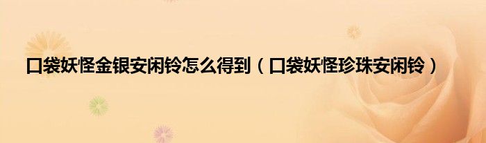 大家好,小问来为大家解答以上问题。口袋妖怪金银安闲铃怎么得到,口袋妖怪珍珠安闲铃这个很多人还不知道,现在让我们一起来看看吧!