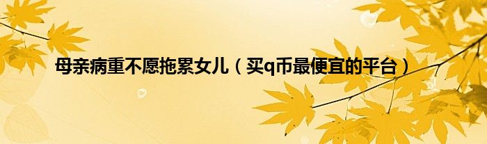 大家好,小问来为大家解答以上问题。母亲病重不愿拖累女儿,买q币最便宜的平台这个很多人还不知道,现在让我们一起来看看吧!