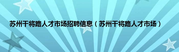 以上就是【苏州干将路人才市场招聘信息,苏州干将路人才市场】相关内容。