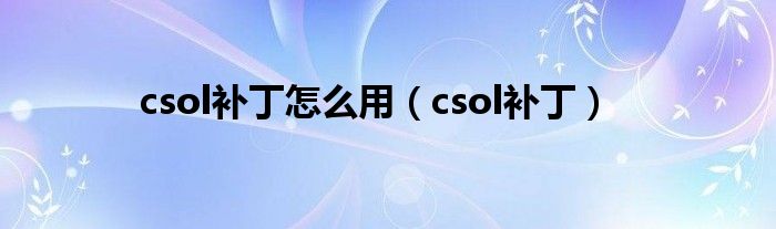 大家好,小问来为大家解答以上问题。csol补丁怎么用,csol补丁这个很多人还不知道,现在让我们一起来看看吧!