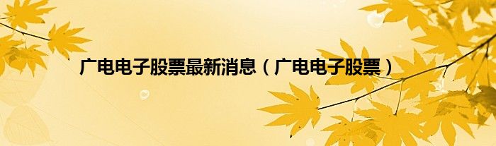 广电电子股票最新消息(广电电子股票)