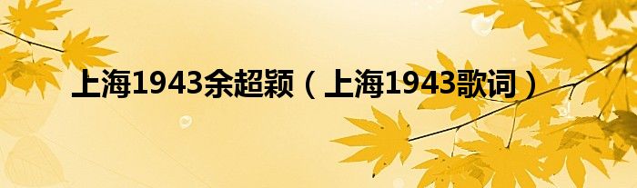 以上就是【上海1943余超颖,上海1943歌词】相关内容。