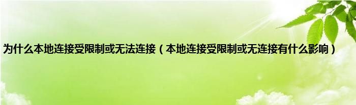 以上就是【为什么本地连接受限制或无法连接,本地连接受限制或无连接有什么影响】相关内容。