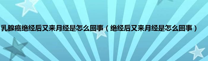 本文,乳腺癌绝经后又来月经是怎么回事,绝经后又来月经是怎么回事到此就分享完毕,希望对大家有所帮助。
