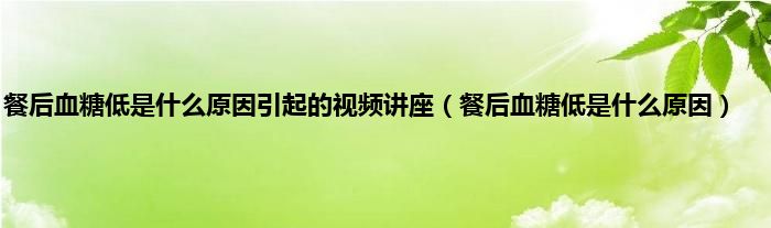 本文,餐后血糖低是什么原因引起的视频讲座,餐后血糖低是什么原因到此就分享完毕,希望对大家有所帮助。