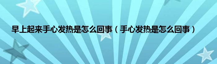 本文,早上起来手心发热是怎么回事,手心发热是怎么回事到此就分享完毕,希望对大家有所帮助。