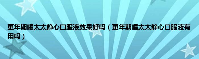 大家好,更年期喝太太静心口服液效果好吗,更年期喝太太静心口服液有用吗很多人还不知道,现在让我们一起来看看吧!