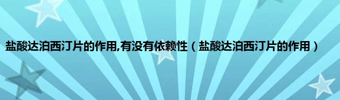 盐酸达泊西汀片的作用,有没有依赖性(盐酸达泊西汀片的作用)