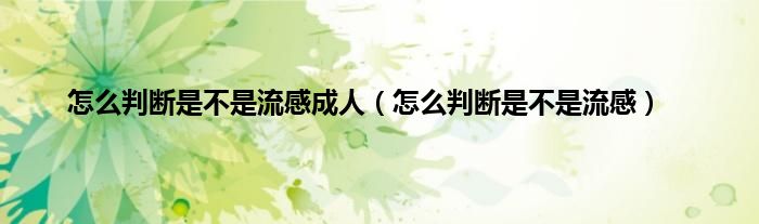 本文,怎么判断是不是流感成人,怎么判断是不是流感到此就分享完毕,希望对大家有所帮助。