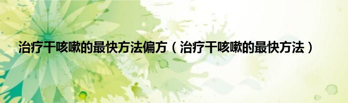 本文,治疗干咳嗽的最快方法偏方,治疗干咳嗽的最快方法到此就分享完毕,希望对大家有所帮助。