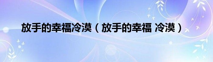 以上就是【放手的幸福冷漠,放手的幸福 冷漠】相关内容。