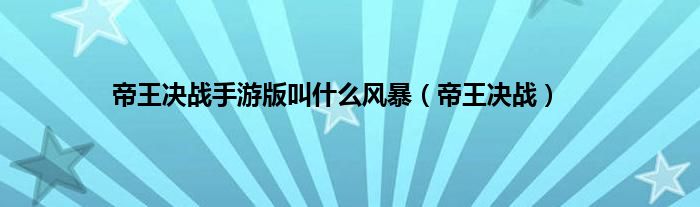 大家好,小问来为大家解答以上问题。帝王决战手游版叫什么风暴,帝王决战这个很多人还不知道,现在让我们一起来看看吧!