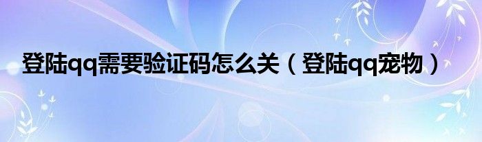 以上就是【登陆qq需要验证码怎么关,登陆qq宠物】相关内容。