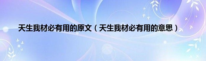以上就是【天生我材必有用的原文,天生我材必有用的意思】相关内容。