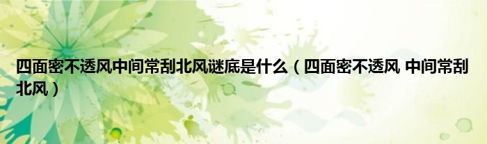 大家好,小问来为大家解答以上问题。四面密不透风中间常刮北风谜底是什么,四面密不透风 中间常刮北风这个很多人还不知道,现在让我们一起来看看吧!