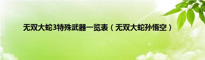 大家好,小问来为大家解答以上问题。无双大蛇3特殊武器一览表,无双大蛇孙悟空这个很多人还不知道,现在让我们一起来看看吧!