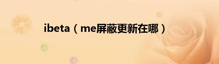 大家好,ibeta,me屏蔽更新在哪很多人还不知道,现在让我们一起来看看吧!