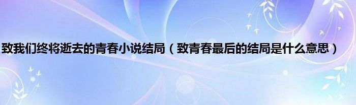 本文,致我们终将逝去的青春小说结局,致青春最后的结局是什么意思到此就分享完毕,希望对大家有所帮助。