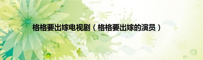 本文,格格要出嫁电视剧,格格要出嫁的演员到此就分享完毕,希望对大家有所帮助。