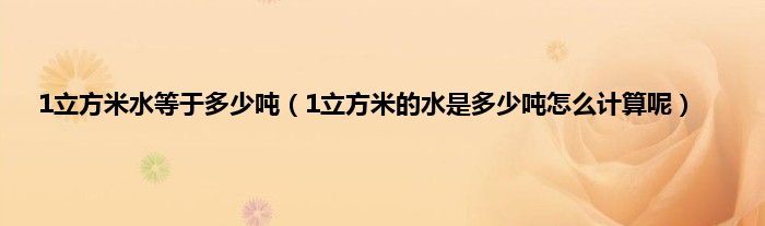 大家好,1立方米水等于多少吨,1立方米的水是多少吨怎么计算呢很多人还不知道,现在让我们一起来看看吧!