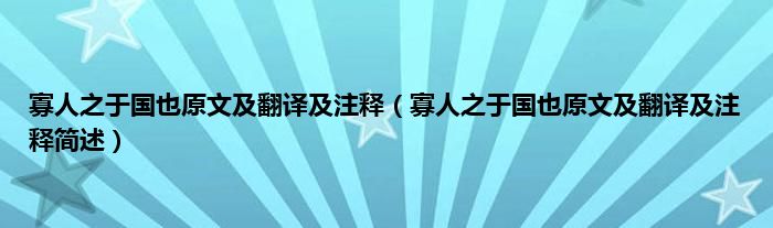 寡人之于国也原文及翻译及注释(寡人之于国也原文及翻译及注释简述)