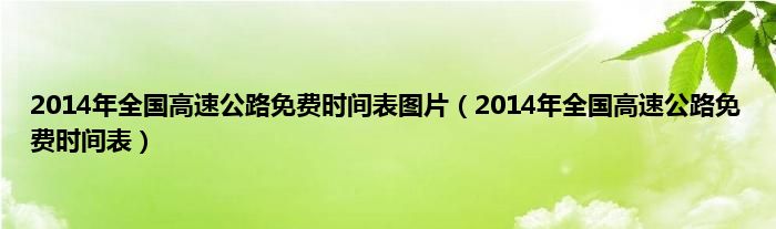 本文,2014年全国高速公路免费时间表图片,2014年全国高速公路免费时间表到此就分享完毕,希望对大家有所帮助。