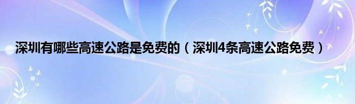本文,深圳有哪些高速公路是免费的,深圳4条高速公路免费到此就分享完毕,希望对大家有所帮助。