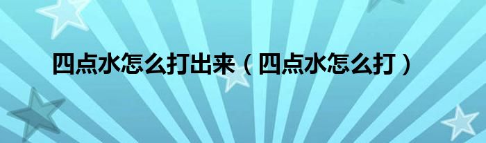 四点水怎么打出来(四点水怎么打)