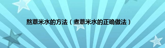 以上就是【熬薏米水的方法,煮薏米水的正确做法】相关内容。