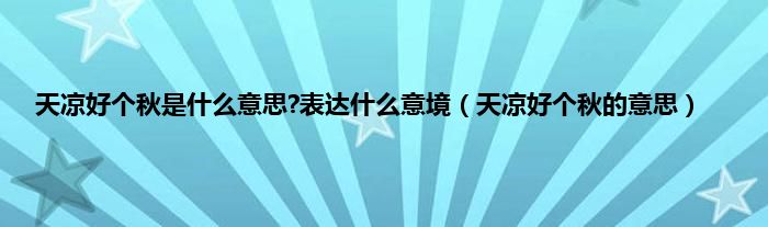 大家好,天凉好个秋是什么意思?表达什么意境,天凉好个秋的意思很多人还不知道,现在让我们一起来看看吧!